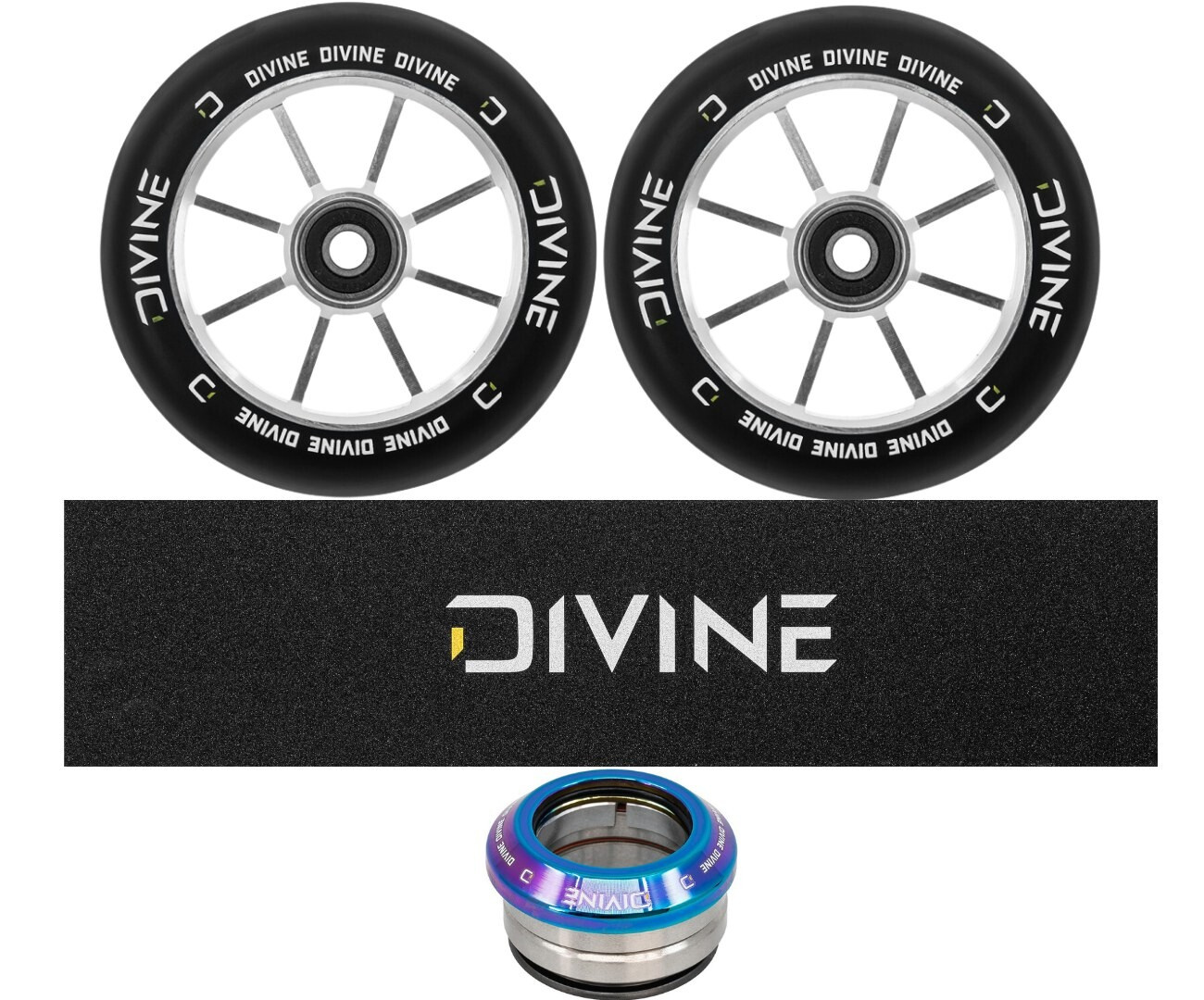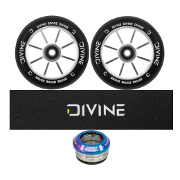 Ausgezeichnete 120 mm Rollen mit Aluminiumkern von der neuen tschechischen Marke Divine. Die Breite des Rades beträgt standardmäßig 24 mm. Lager ABEC 11 garantieren eine hervorragende Geschwindigkeit.